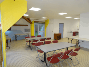 – La salle est louée toute l’année. Attention : du 1er avril au 1er novembre la salle est louée en forfait avec 6 chalets minimum soit 48 couchages.                              – Du 4 juillet et 22 août 2026, la salle n’est pas louée.                                                                                                      – Une 2ème salle juste à côté peut être louée pour le dodo des  enfants!